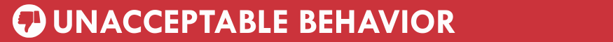 Anyone—this includes Finalists too—asked to stop unacceptable behavior is expected to comply immediately. Event organizers may take any action deemed appropriate, including but not limited to: