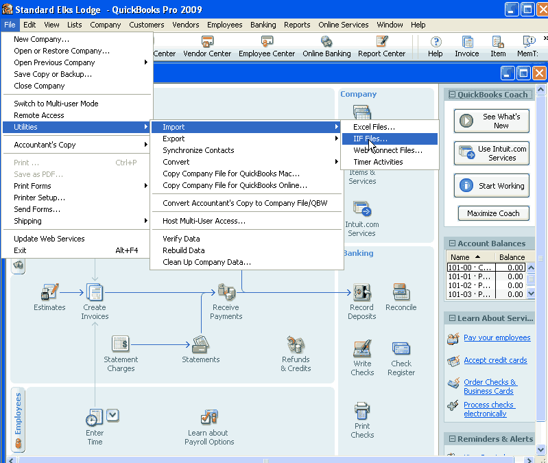 From the "File" menu select "Utilities", "Import", "IIF Files..."