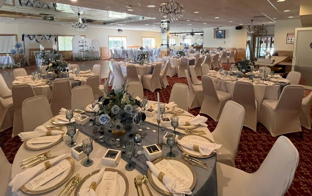 Full Kitchen/Catering Available. Simple elegance with a spacious dance floor & bar.